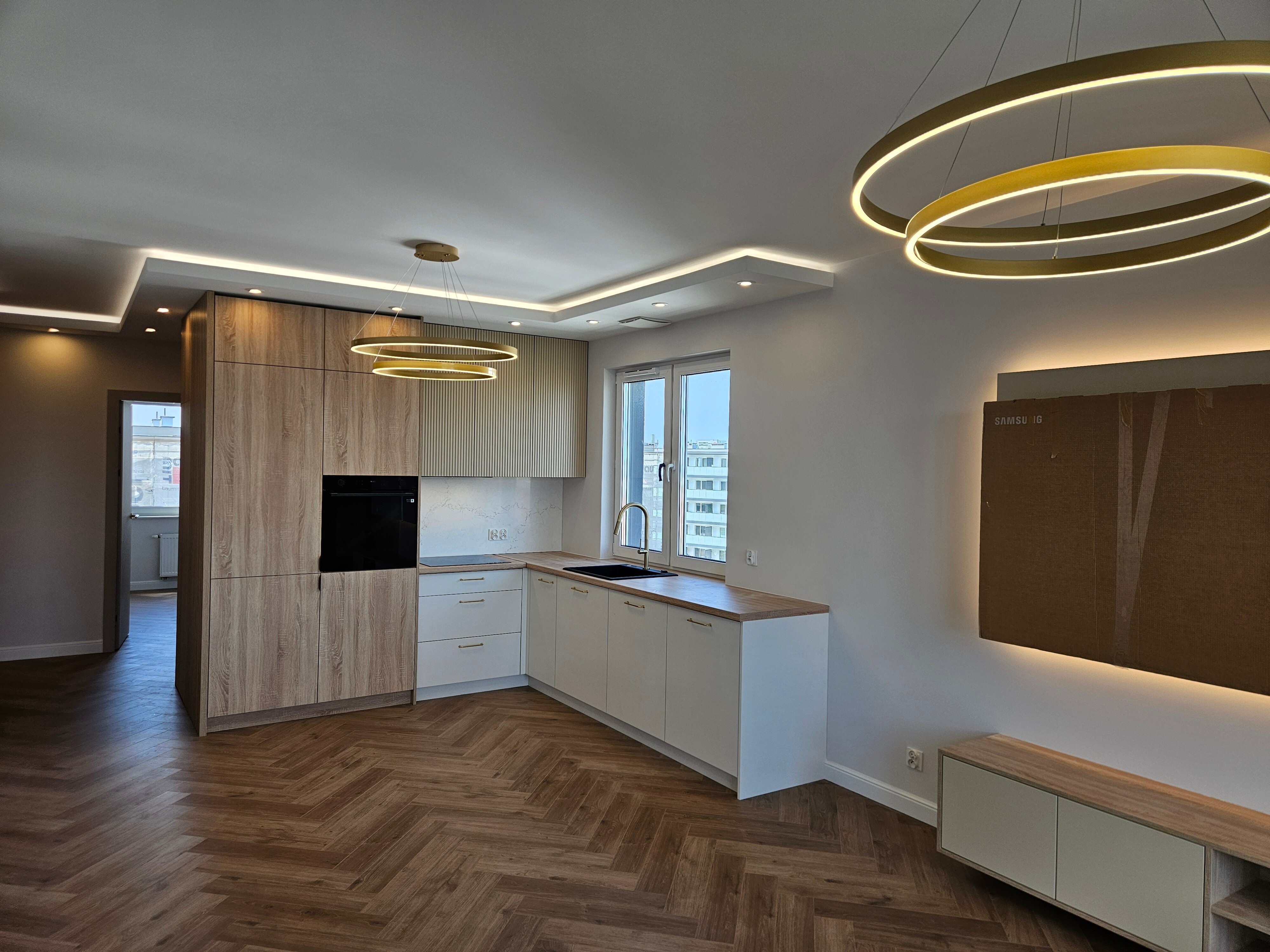 Po zakończeniu głównych prac remontowych wykonywany jest montaż zabudów meblowych oraz mebli przygotowanych na wymiar, takich jak kuchnia czy szafy.
